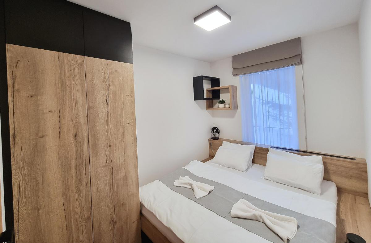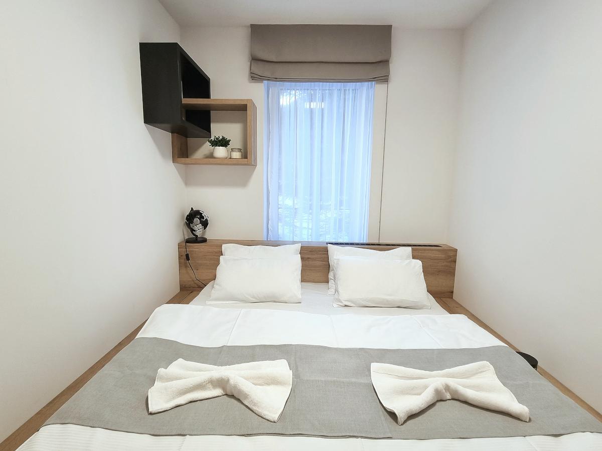 Apartmán nabízí ubytování pro 4 osoby. Ve dvou pokojích. V ložnici se nachází manželská postel s velmi pohodlnými matracemi. V obývacím pokoji je rozkládací pohovka hotelového typu pro každodenní spaní. Kuchyně kompletně vybavena.